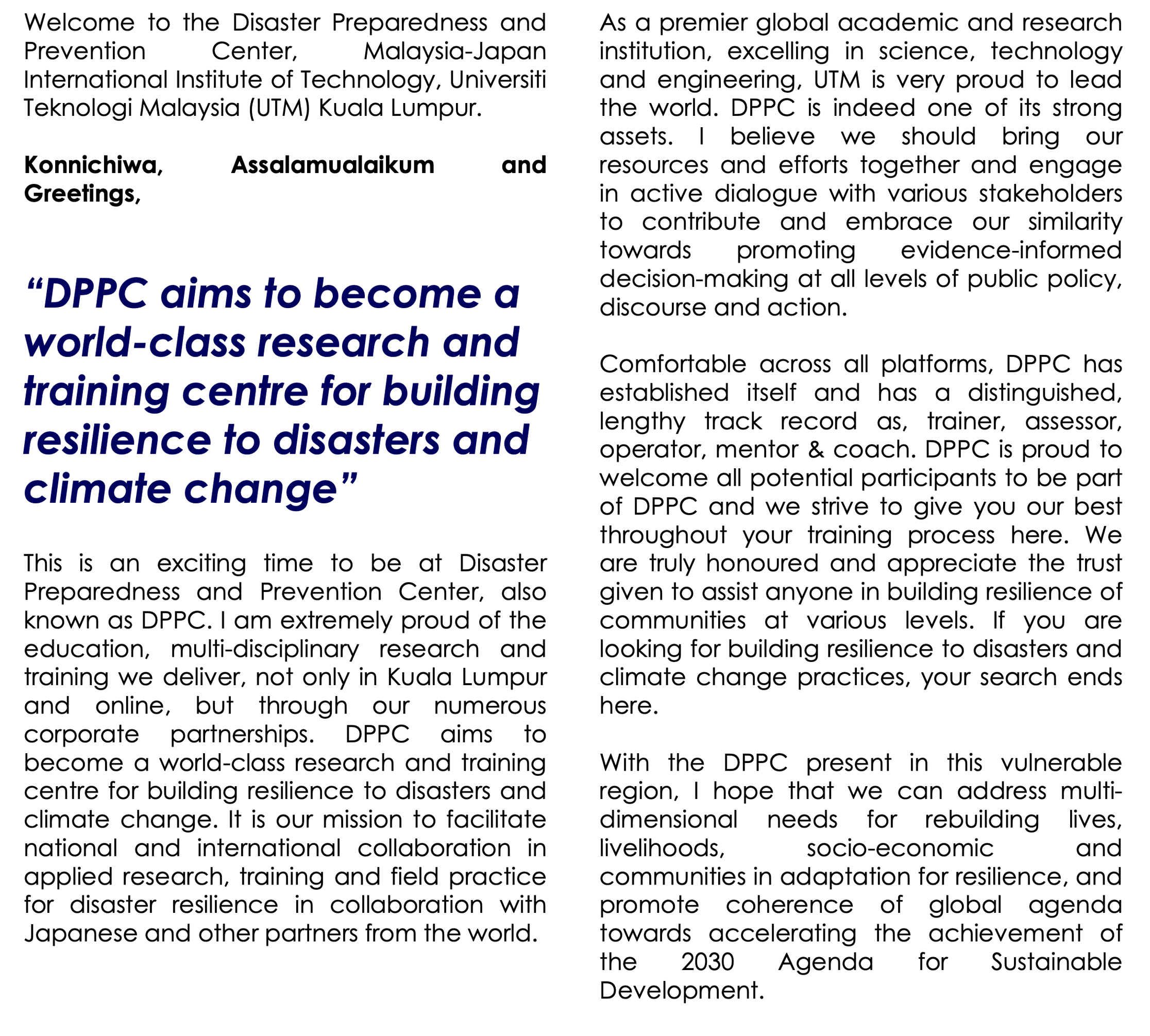 WELCOME MESSAGE FROM THE DIRECTOR