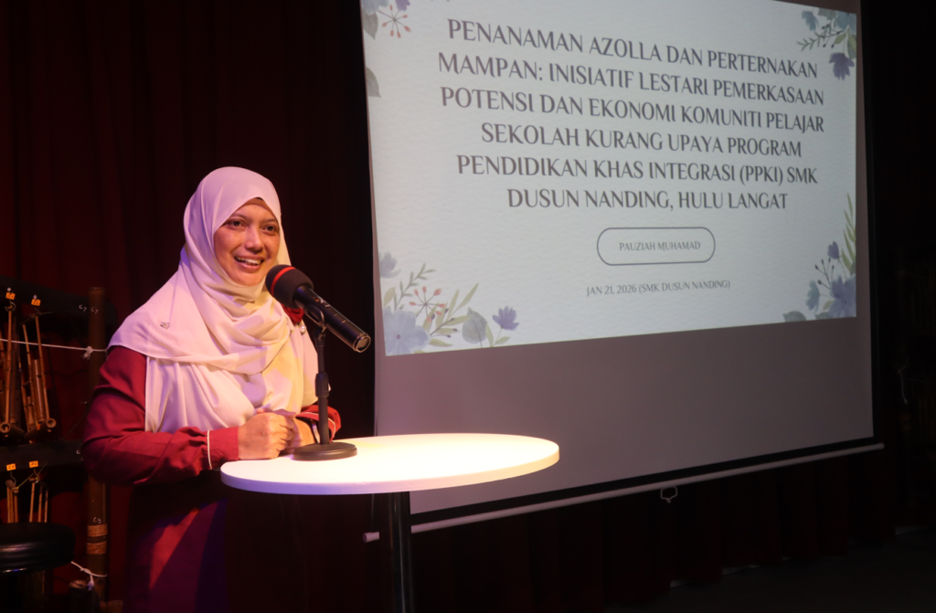 Prof. Madya Ir. Dr. Pauziah Muhamad menyampaikan pengenalan projek penanaman Azolla dan penternakan ikan tilapia
