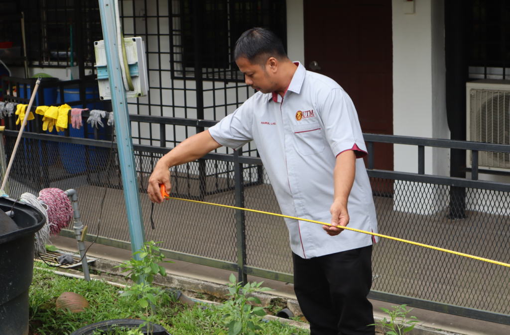Hairul Lail Ismail melakukan pengukuran kawasan dan menilai kesesuaian tapak pelaksanaan projek
